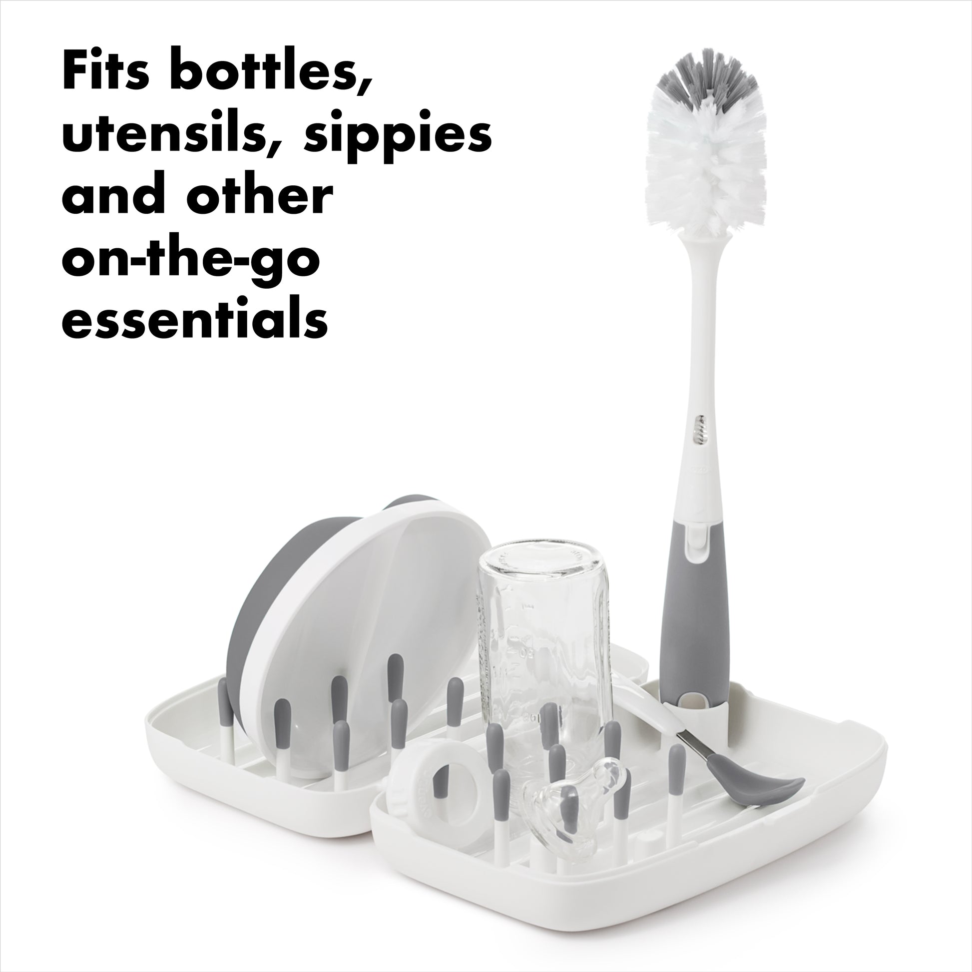 แปรงล้างขวดนม แบบพกพา สีเทา | OXO Tot on-the-go drying rack & bottle brush Grey